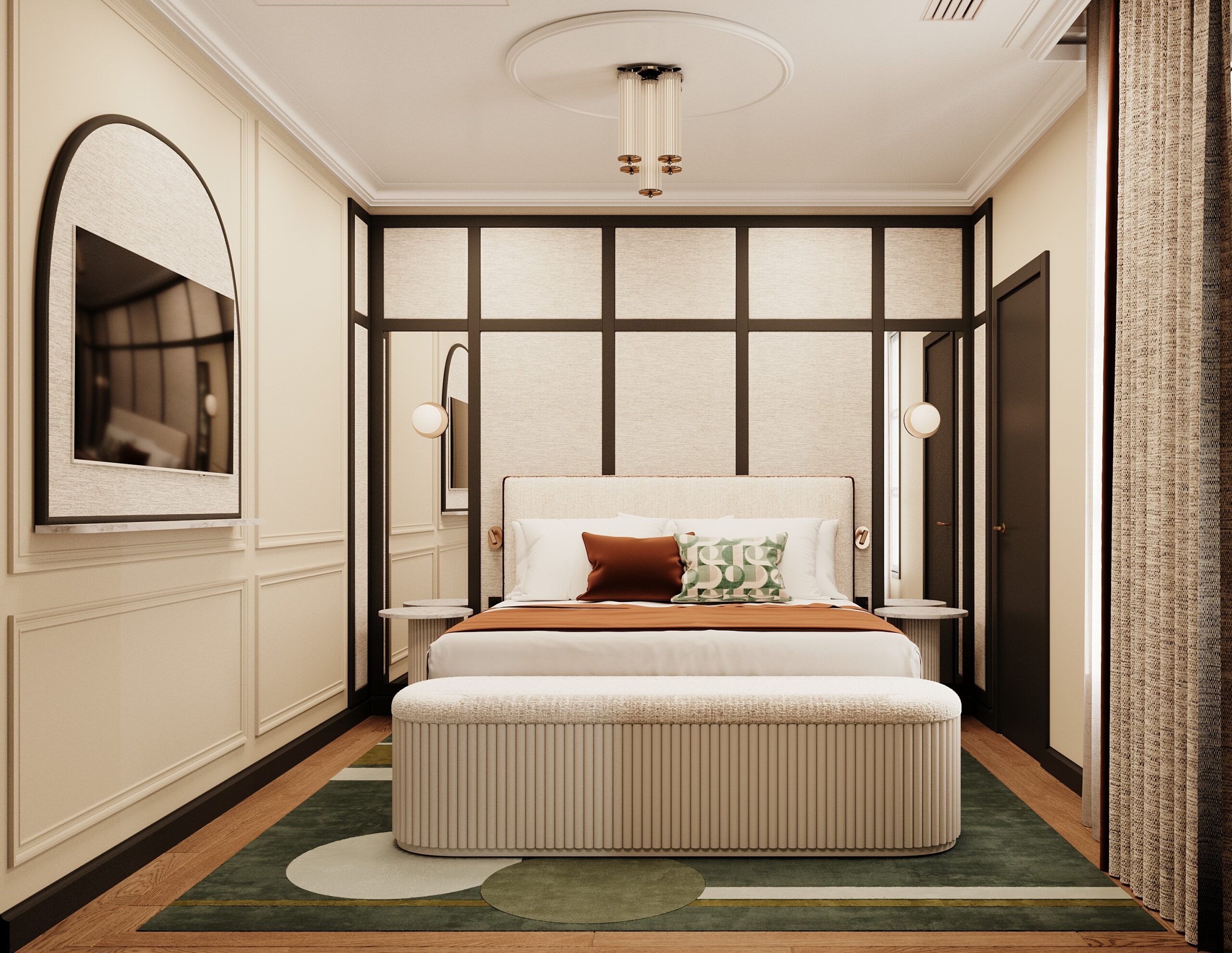 pouvant accueillir jusqu’à quatre personnes dispose de deux salles de bain, d’une chambre et d’un salon avec canapé. Fermez les portes coulissantes qui séparent chambre et salon pour vos rendez-vous professionnels ou pour créer des espaces nuit distincts lors de vos séjours en famille.